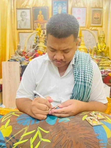 ปิดท้ายด้วยการเขียนยันต์เสน่ห์และโชคลาภ